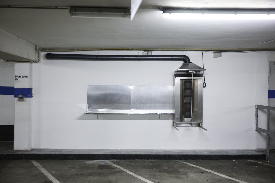 يتداخل الفضاء الخارجي والداخلي لقاعة الفن، وتتلاقى ثقافات مختلفة وبيئات اجتماعية مختلفة. يتحول موقف السيارات كمكان غير محدد وفضاء بلا هوية، إلى حامل للذكريات.