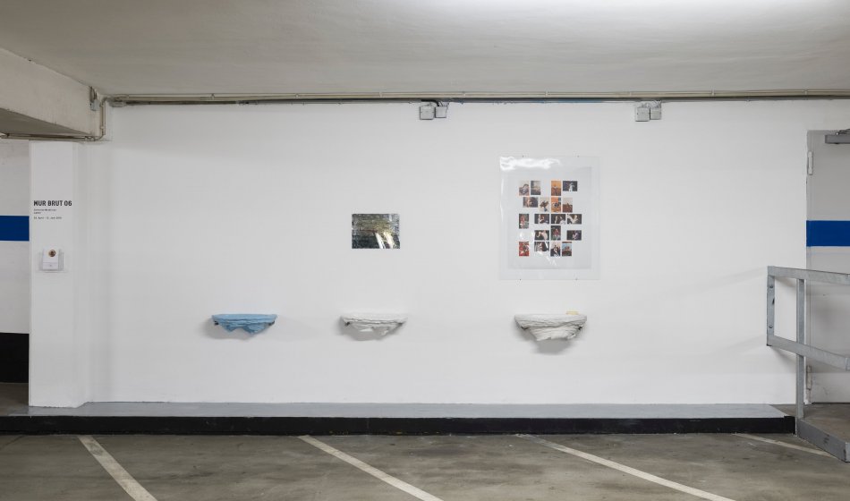 For Kunsthalle MUR BRUT, at regular intervals artists are invited to design a wall in the parking garage at Grabbeplatz 4. The multipart wall installation by Christine Moldrickx is reminiscent of a bathroom and opens up an element of intimacy in the space of the parking garage.